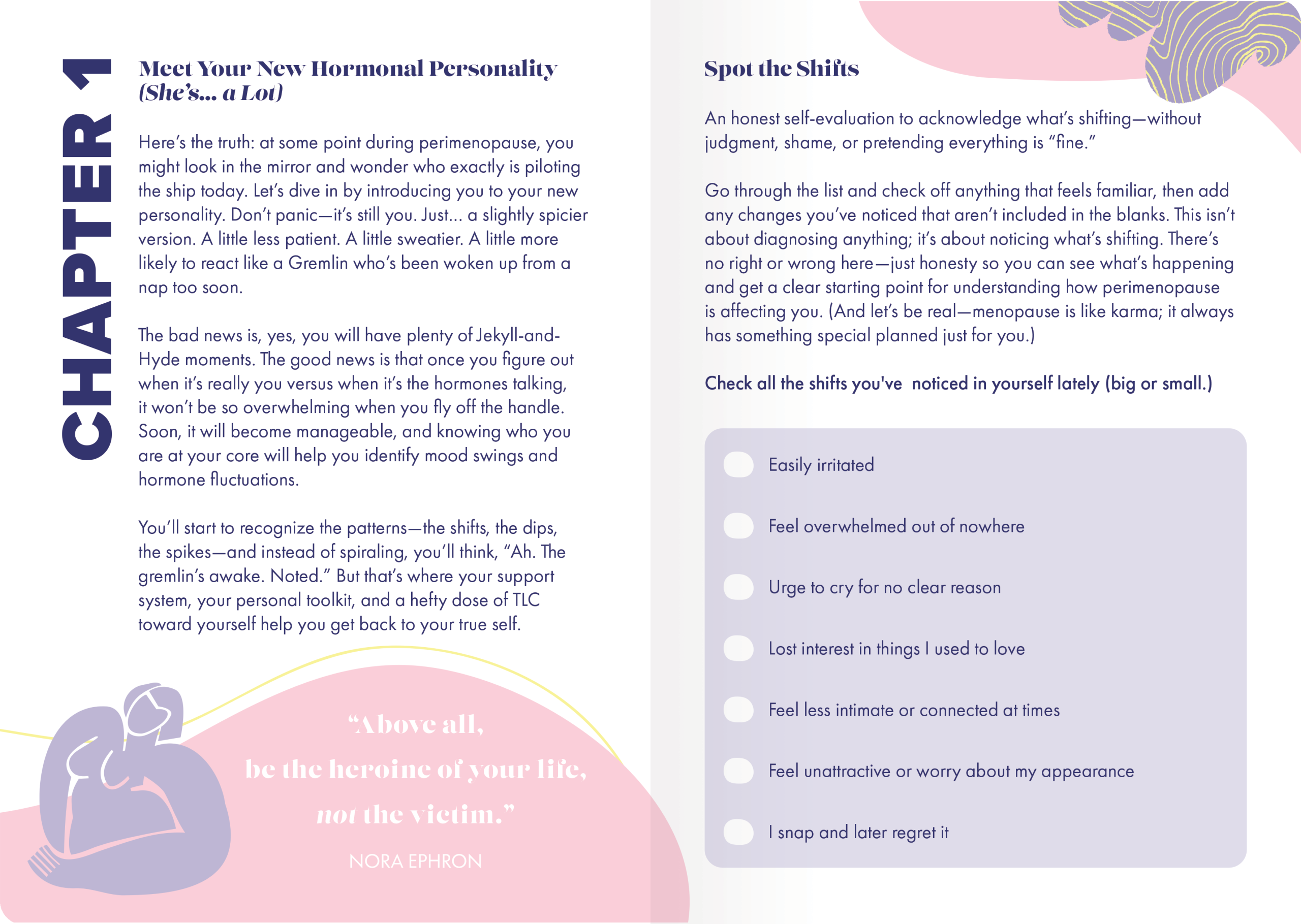 Hit Pause is the unexpected companion for women navigating the hormonal heatwave of perimenopause and menopause. If you’re juggling hot flashes, mood swings, mystery shedding, and the challenge of keeping a shred of dignity, this journal gets it. Inside, you’ll find humor, clarity, and grounded guidance for the symptoms and emotional shifts no one warned you about. With practical prompts, thoughtful exercises, and just the right amount of sarcasm, Hit Pause helps you slow down, understand what you’re feeling, and figure out what actually supports you on the days you don’t feel like yourself.