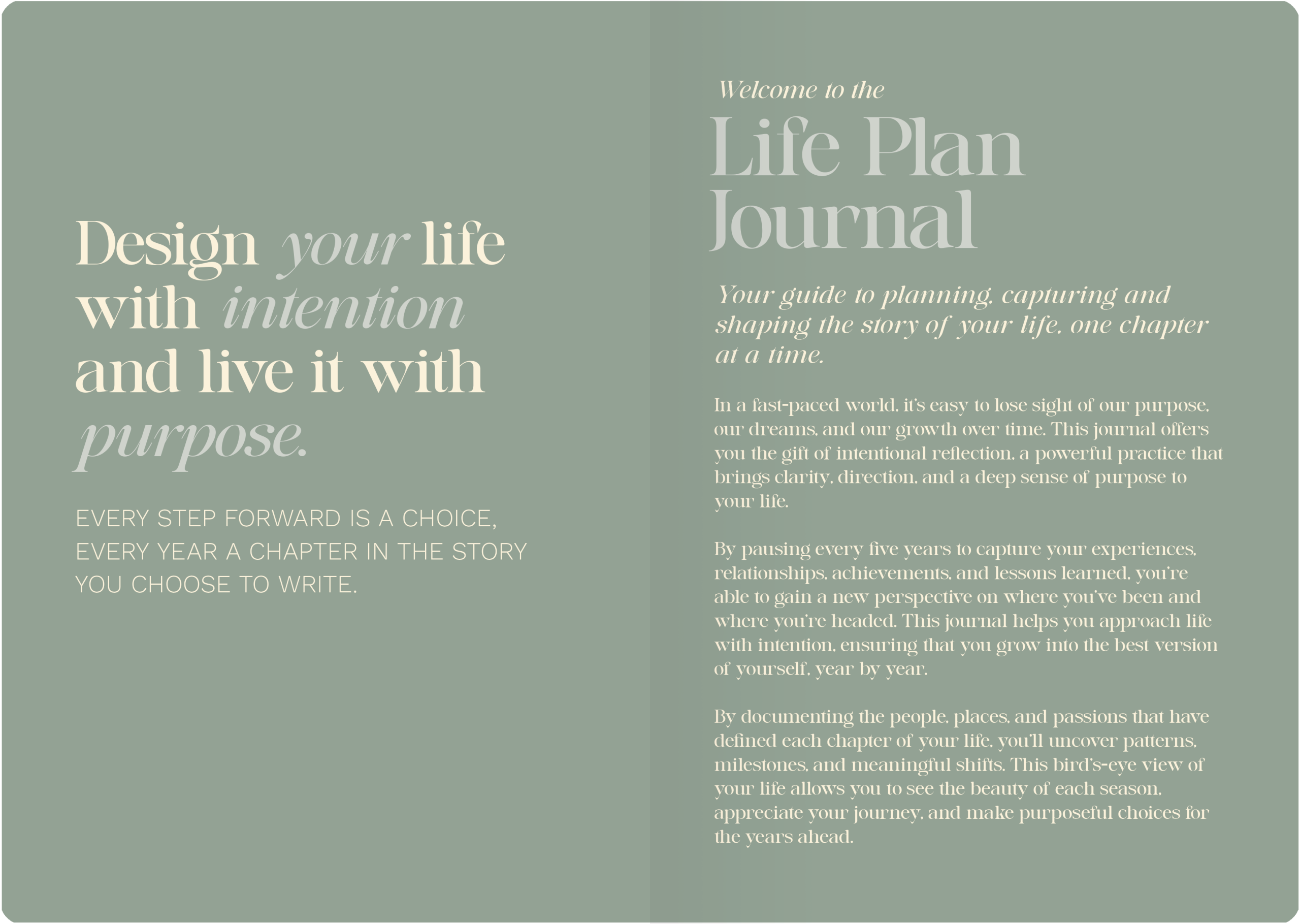 My Life Plan is your guide to plan, capture and shape the story of your life, one chapter at a time. This journal offers you the gift of intentional reflection, a powerful practice that brings clarity, direction, and a deep sense of purpose to your life.